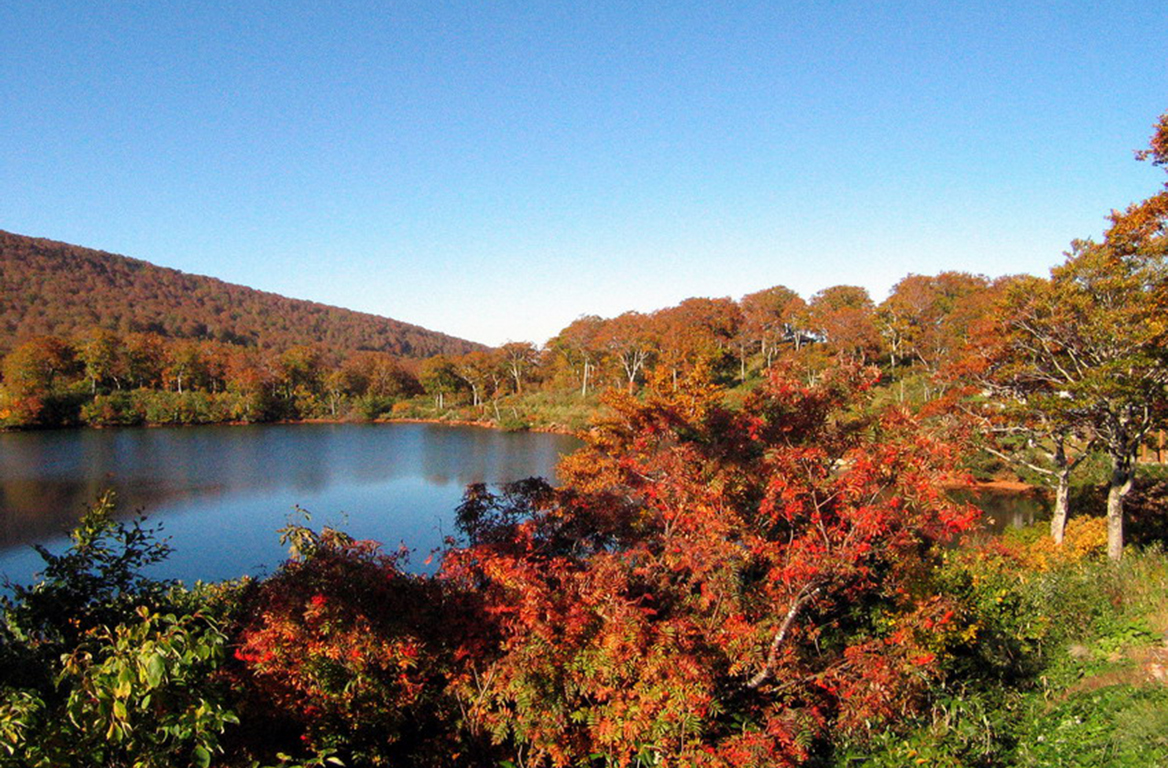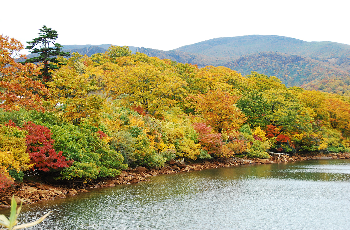 栗駒道路(県道282号線)沿いにあり、別名「朱沼」と呼ばれる湖です。周辺はブナ林に覆われ、秋には湖面に映る紅葉が美しいことから、多くの観光客が訪れます。