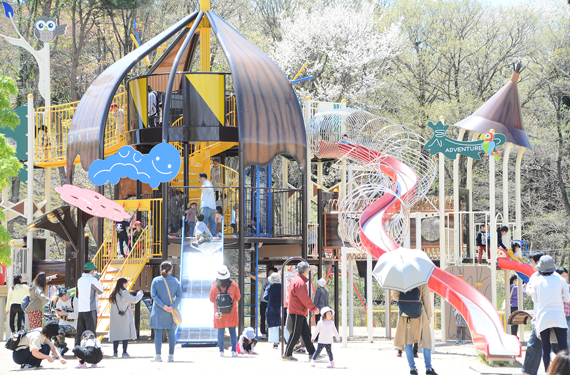 町のシンボルである桜の名所。日本各地から集められた200種2,000本の桜が植栽されており、全国的にも貴重な公園です。桜の他にも、バラやツツジなどが植栽されており、四季折々の花が楽しめます。苑内には、遊具を設置したチビッコ広場をはじめ、パターゴルフ、グラウンドゴルフ、テニスコートなどの有料運動施設や男鹿の山々を見渡せる浴場も完備されています。