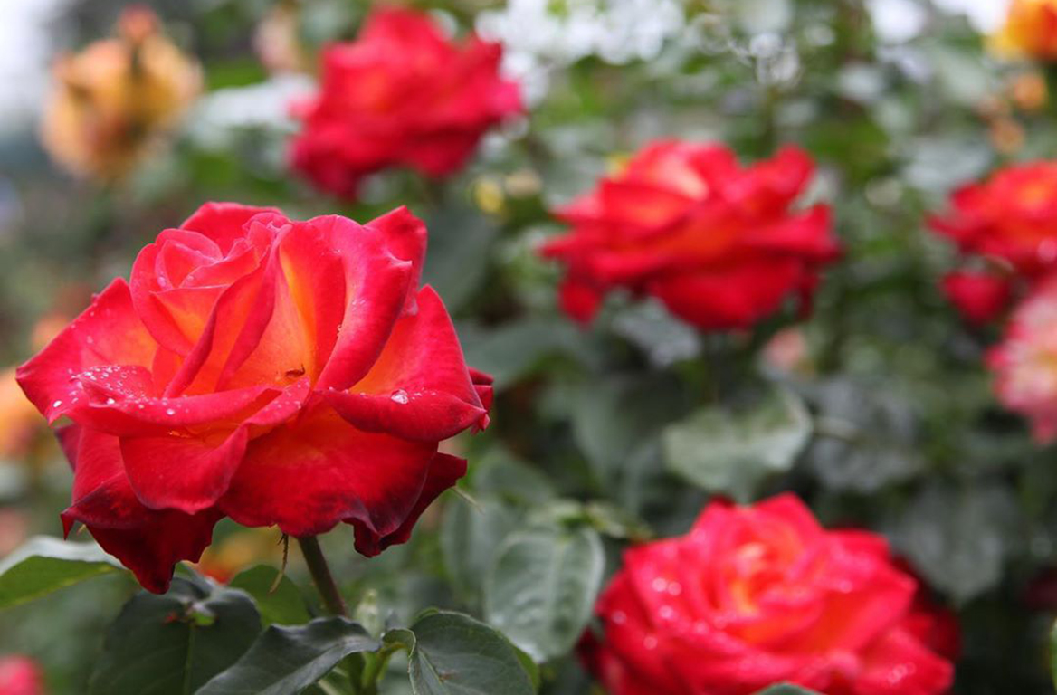四季を通じて様々な花が楽しめる日本国花苑。6月上旬~6月下旬、10月上旬~下旬にかけて苑内のバラ園では、ポピュラーな品種から珍しい品種まで約200種類、1200本の色とりどりのバラを一度に楽しむことができます。