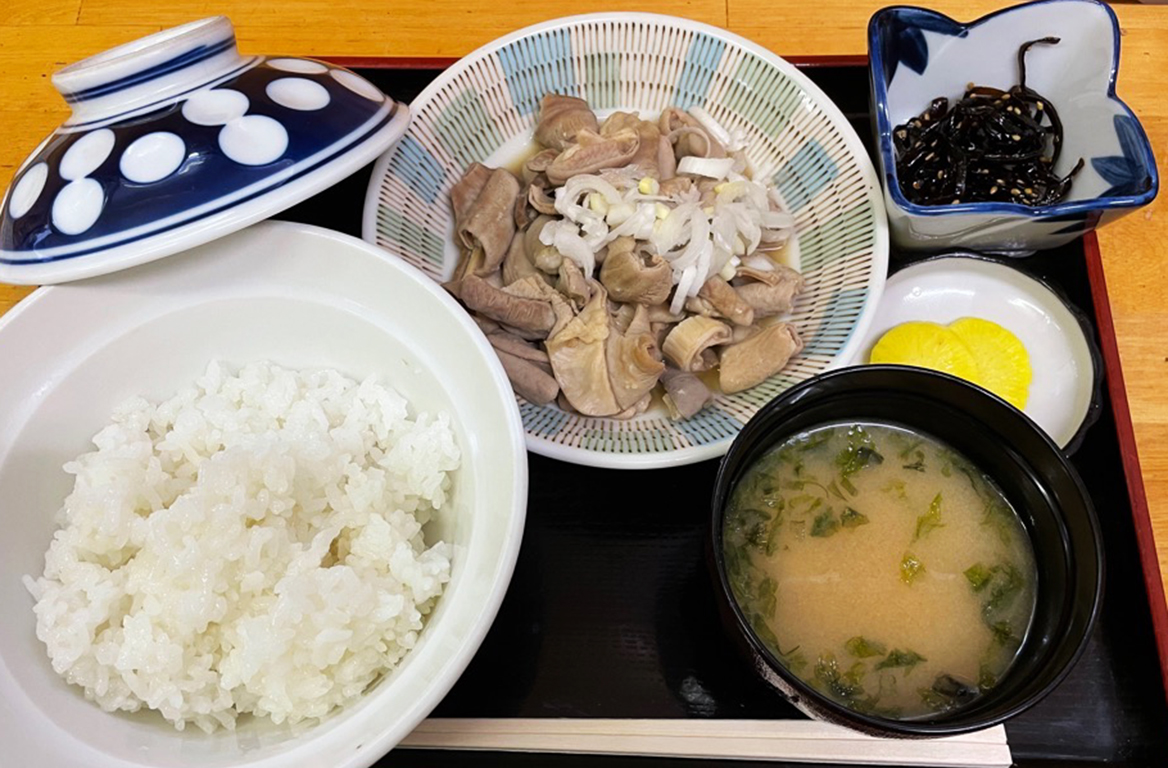 国道から少し脇道に入ったところにある食堂。中華そばやうどん、そばの他、カツ丼やカレーライスなどのご飯もの、セットメニューなども取り揃えられています。柔らかく煮込まれニンニクが効いたホルモンは絶品です。