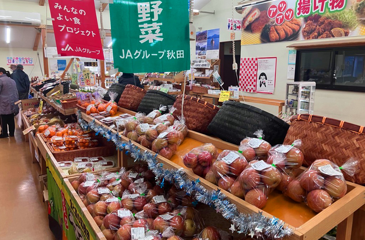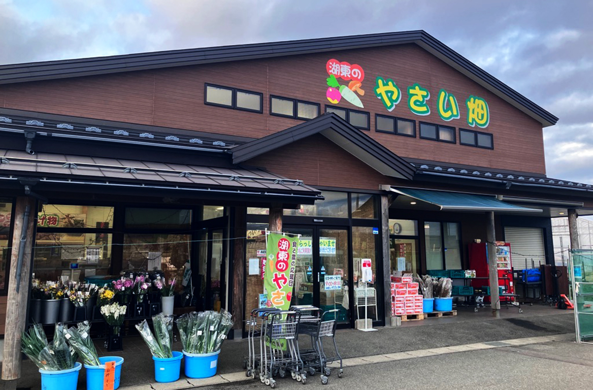 JAあきた湖東の農産物直売所。地元の旬の農産物や全国から集めた選りすぐりの逸品を販売しています。また、お弁当や惣菜のコーナーも充実しています。枝豆ソフトが名物です。