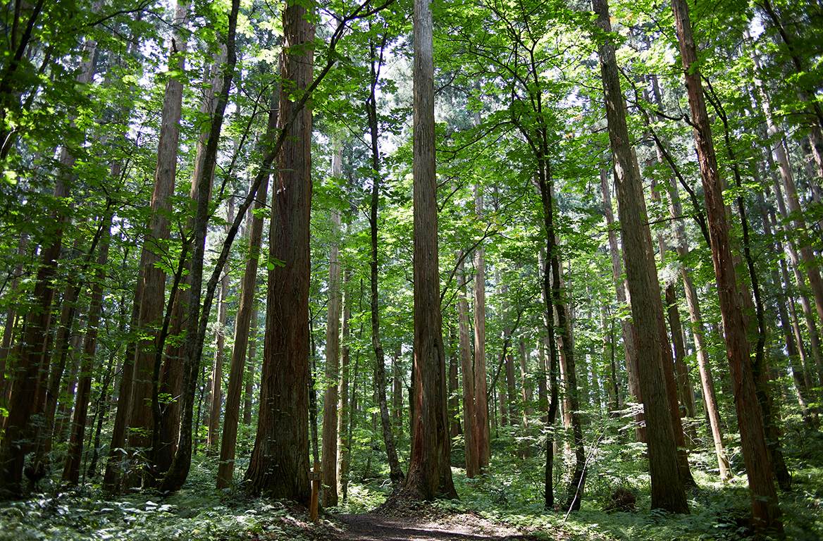 樹齢220年を超える天然秋田杉とスギ人工林が対比できる、資源的にも学術的にも貴重な林分であり、遊歩道が整備されているため散策も楽しむことができます。1988(昭和63)年に自然観察教育林に指定され、地元住民や小中学生の自然観察の場として利用されています。