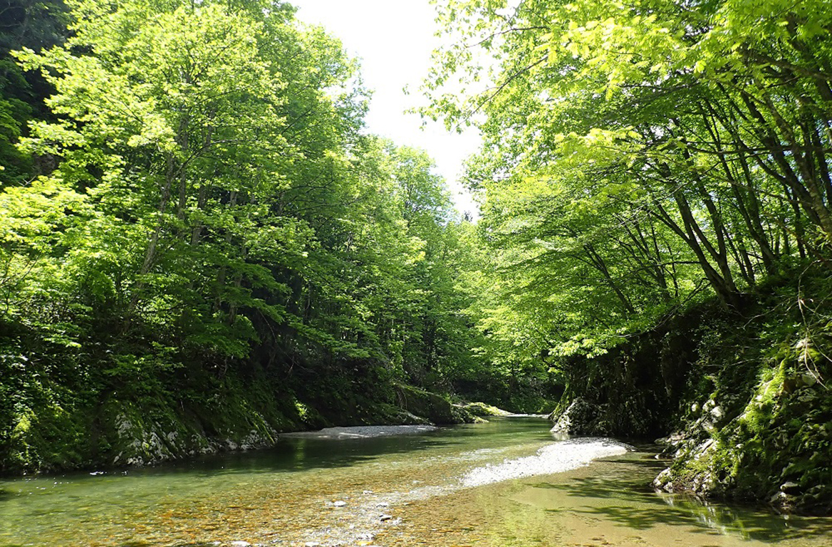 太平山に源を発する小阿仁川が流れる渓谷。四季を通じていろいろな表情を見せ、どの季節も趣のある景観を見せます。川底が見えるほど水が澄んでいて、渓流釣りのポイントとしても知られています。