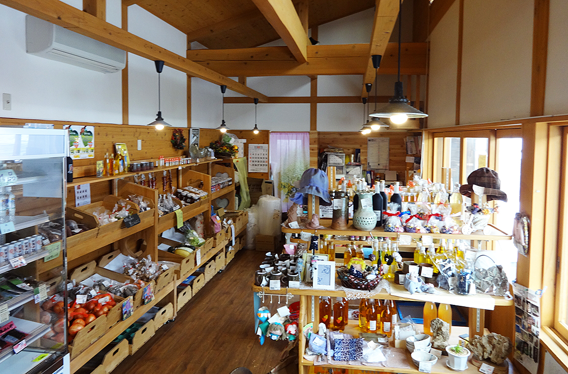 道の駅こさか七滝に隣接する農産物直売所。その日にとれた町内産の農産物や加工品、園芸品等が並びます。店内には喫茶コーナーがあり、コーヒーを飲みながら休憩することもできます。