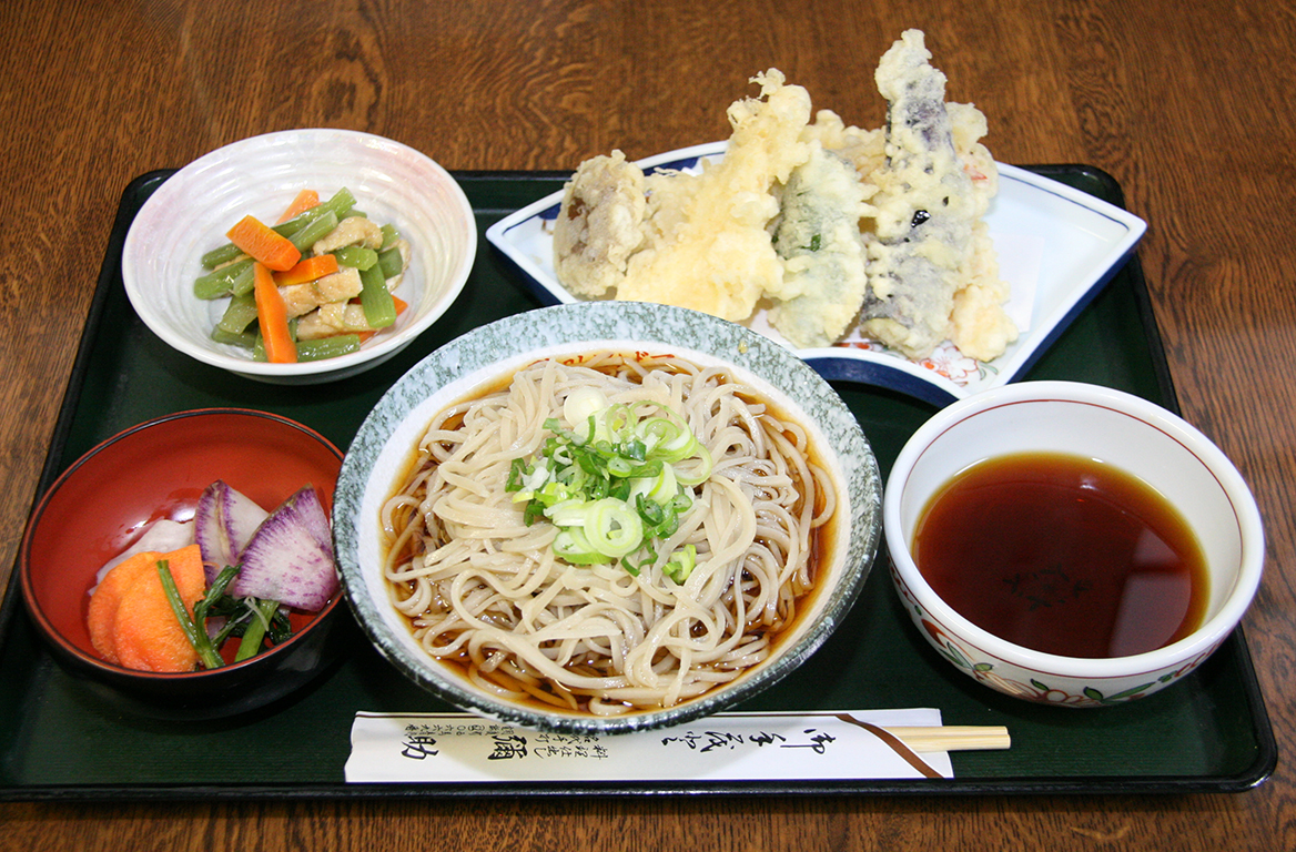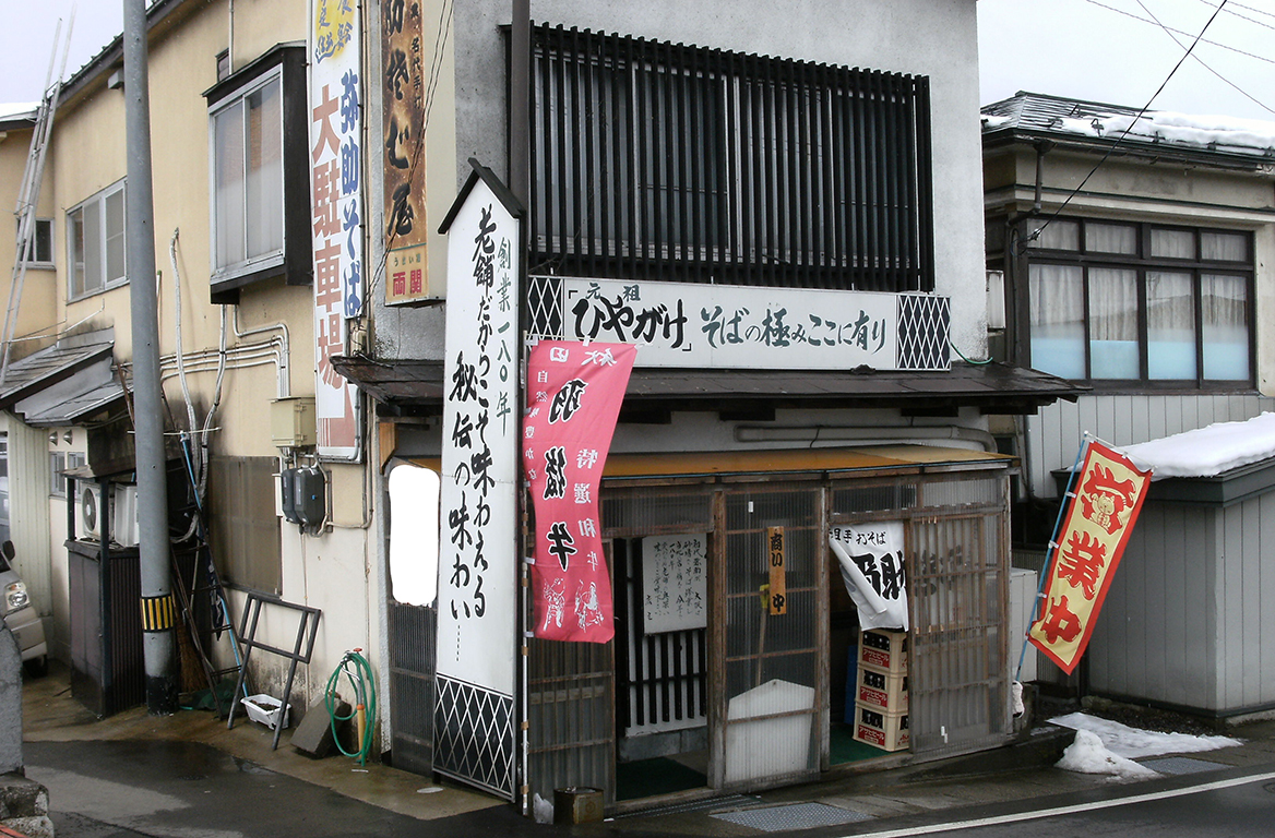 「西馬音内そば」発祥のお店で、文政元(1818)年創業。 つなぎに布海苔を使用し、二八の手打ちで包丁切りの極細で歯切れがよいそばに、昆布と鰹節の風味豊かな冷たいつゆをあわせます。 創業以来手打ち・手切りにこだわり、毎朝打ちたてのそばを提供しており、夏はもちろん、冬でも冷たいつゆをかけた「冷がけ」を味わうお客さんで賑わっています。